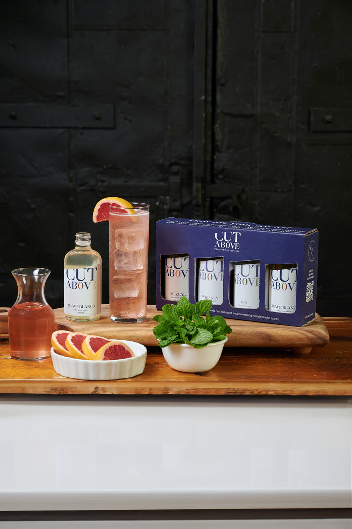 The best way to taste our full award winning line up. This pack includes one 6 oz. bottle each of our Zero Proof Gin, Agave Blanco Tequila, Whiskey, and Mezcal so you can decide on your favorite or give a great gift to a friend. Packaged in our branded box for easy gifting, each 6 oz. bottle contains enough to make up to 3 cocktails.