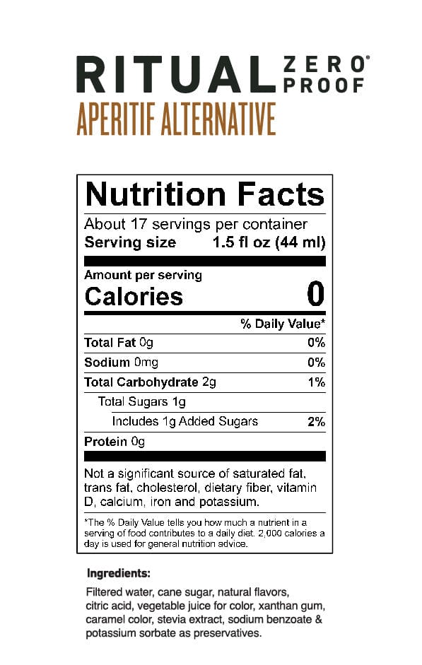 Our aperitif substitute is specially crafted to replace full proof aperitif in popular drinks like a Negroni or Spritz. Ritual Zero Proof is not meant to be consumed neat or on the rocks, but if you’re in a pinch we recommend drinking our spirit alternatives in bubbly water.