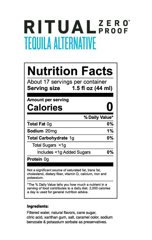 Experience the earthy agave flavors and pleasant heat of Ritual Zero Proof Tequila Alternative, the highest-rated spirit alternative in the world. Crafted with high-quality ingredients and natural botanical flavors, our award winning tequila substitute delivers the same grassy flavor, smoky aroma, and bright fire of traditional tequila — without the alcohol, calories, or hangover.